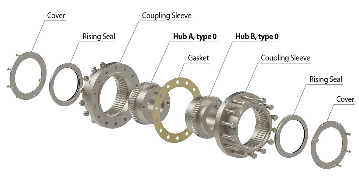 The new RINGSPANN GH series shaft couplings have nitrided gearing made of high-strength quality steel and an O-ring seal that keeps grease back and dirt particles away. The image shows the double-sided toothed variant GHF. Image: RINGSPANN
